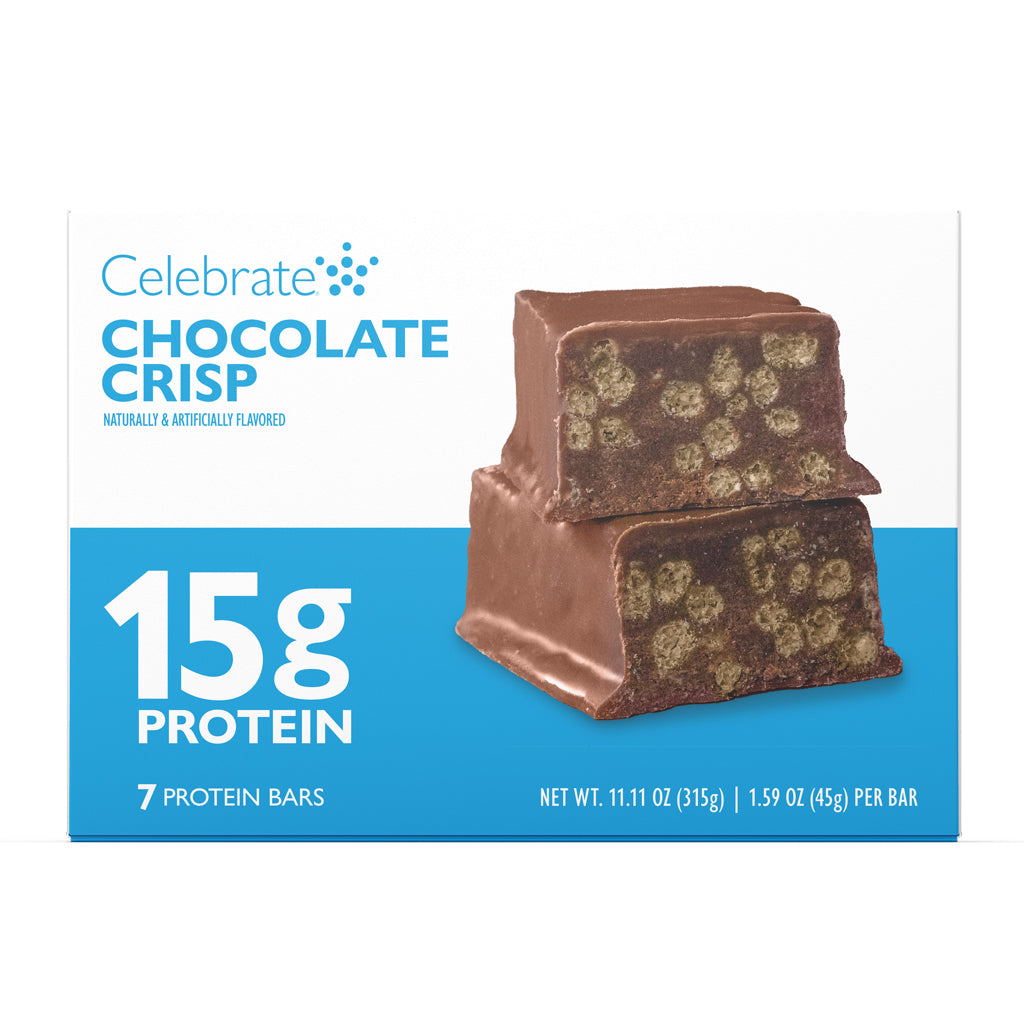 A Celebrate's bariátriai fehérjeszeletei 15 g kiváló minőségű fehérjét biztosítanak. Minden szelet tartalmaz rostot, kalóriatartománya 130-160, és a nettó szénhidráttartománya 14-17 g között van. A szeletek 6 ízben kaphatók (Salted Toffee Pretzel, Chocolate Crisp, Fluffy Lemon, Fluffy Nutter, Fluffy Choco Vanilla ropogós és Fluffy Berry).